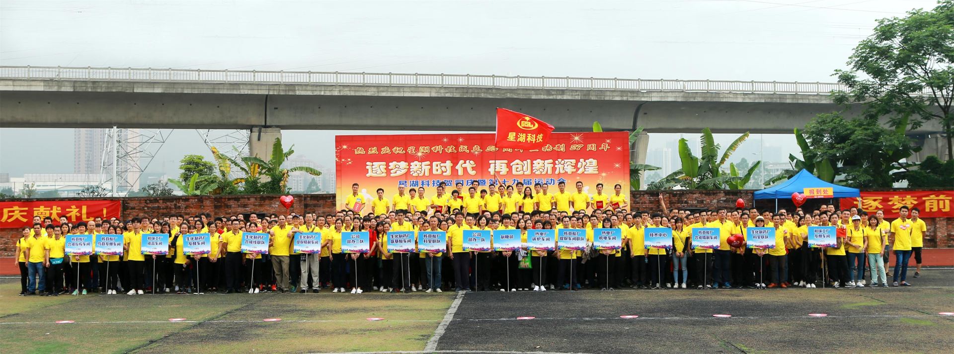 星湖科技隆重舉行賀司慶暨第十九屆運(yùn)動會 今年4月18日是星湖科技成立55周年暨轉(zhuǎn)制27周年的大喜日子,公司在生物工程基地運(yùn)動場隆重舉行了以“逐夢新時(shí)代?再創(chuàng)新輝煌”為主題的賀司慶暨第十九屆運(yùn)動會。公司黨委副書記、工會主席葉志超,副總經(jīng)理黃勵堅(jiān)、張番平,財(cái)務(wù)總監(jiān)朱華等在家的公司領(lǐng)導(dǎo)參加了活動,與各級管理人員和廣大員工同賀司慶,以一場“文明、熱烈、精彩、圓滿”的體育盛會,為公司生日獻(xiàn)上最美好的祝福,祝愿公司前程似錦,大展宏圖,逐夢新時(shí)代,再創(chuàng)新輝煌!激勵員工爭創(chuàng)優(yōu)異成績,迎接新中國成立70周年!
