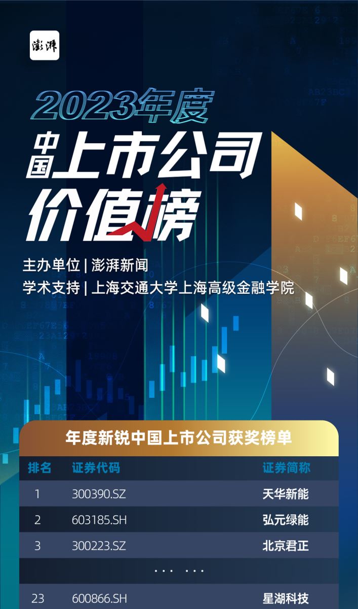 12月26日,由澎湃新聞發(fā)起、上海交通大學(xué)上海高級(jí)金融學(xué)院學(xué)術(shù)支持的“2023年度中國上市公司價(jià)值榜”(以下簡稱“價(jià)值榜”),歷時(shí)近8個(gè)月的自薦征集與初審、復(fù)審,最終評(píng)定結(jié)果正式出爐,星湖科技上榜“年度新銳中國上市公司”。